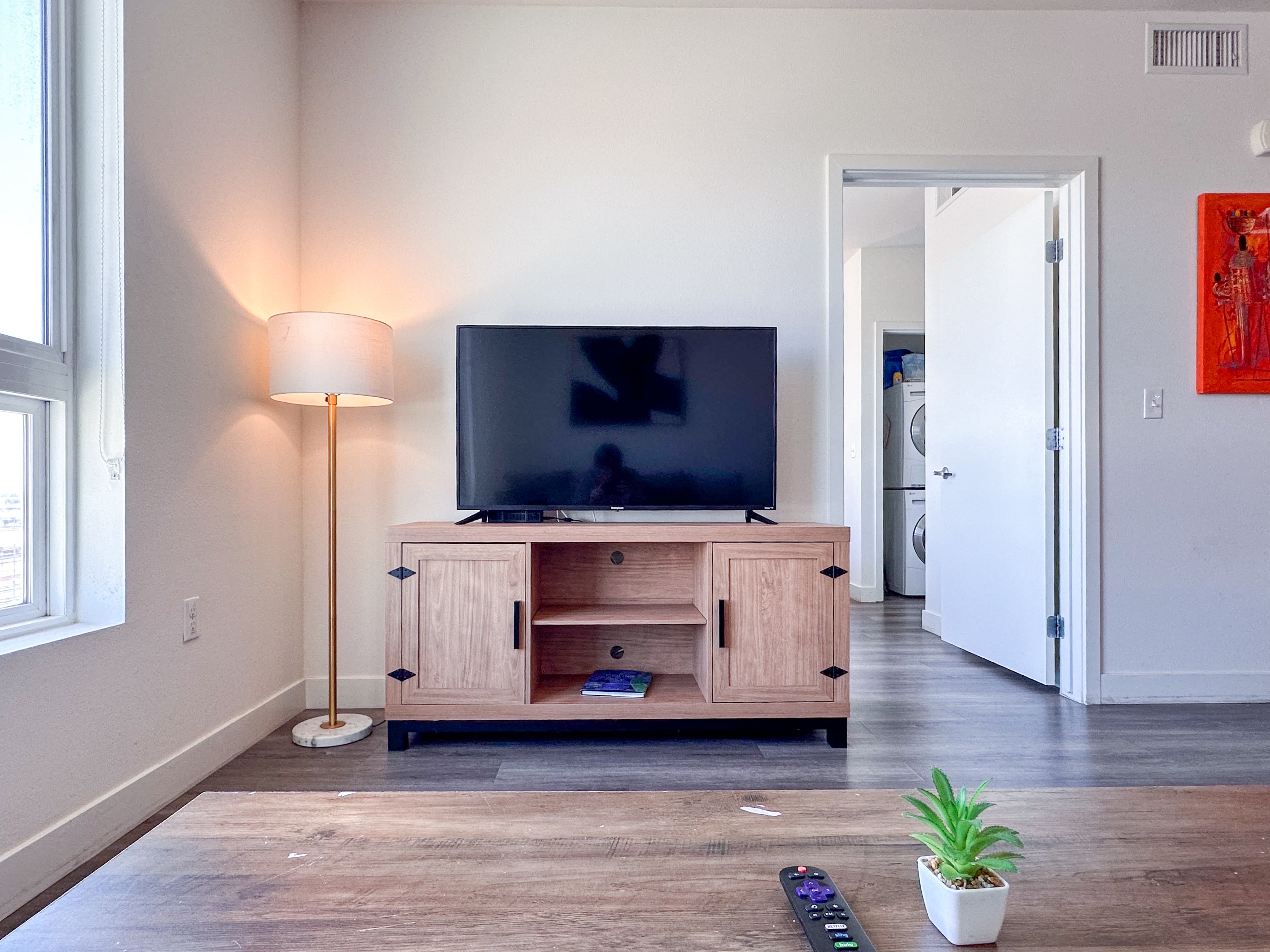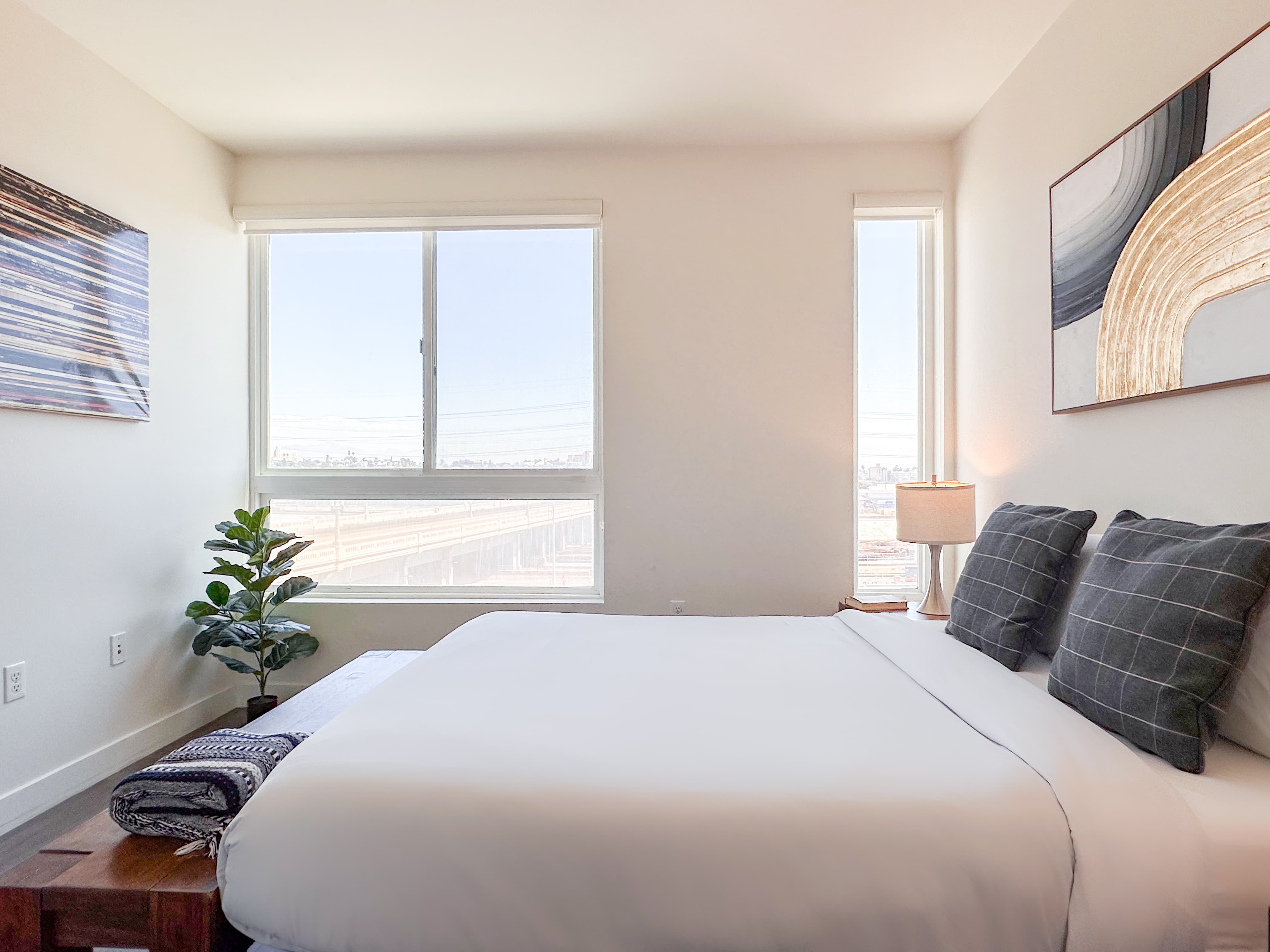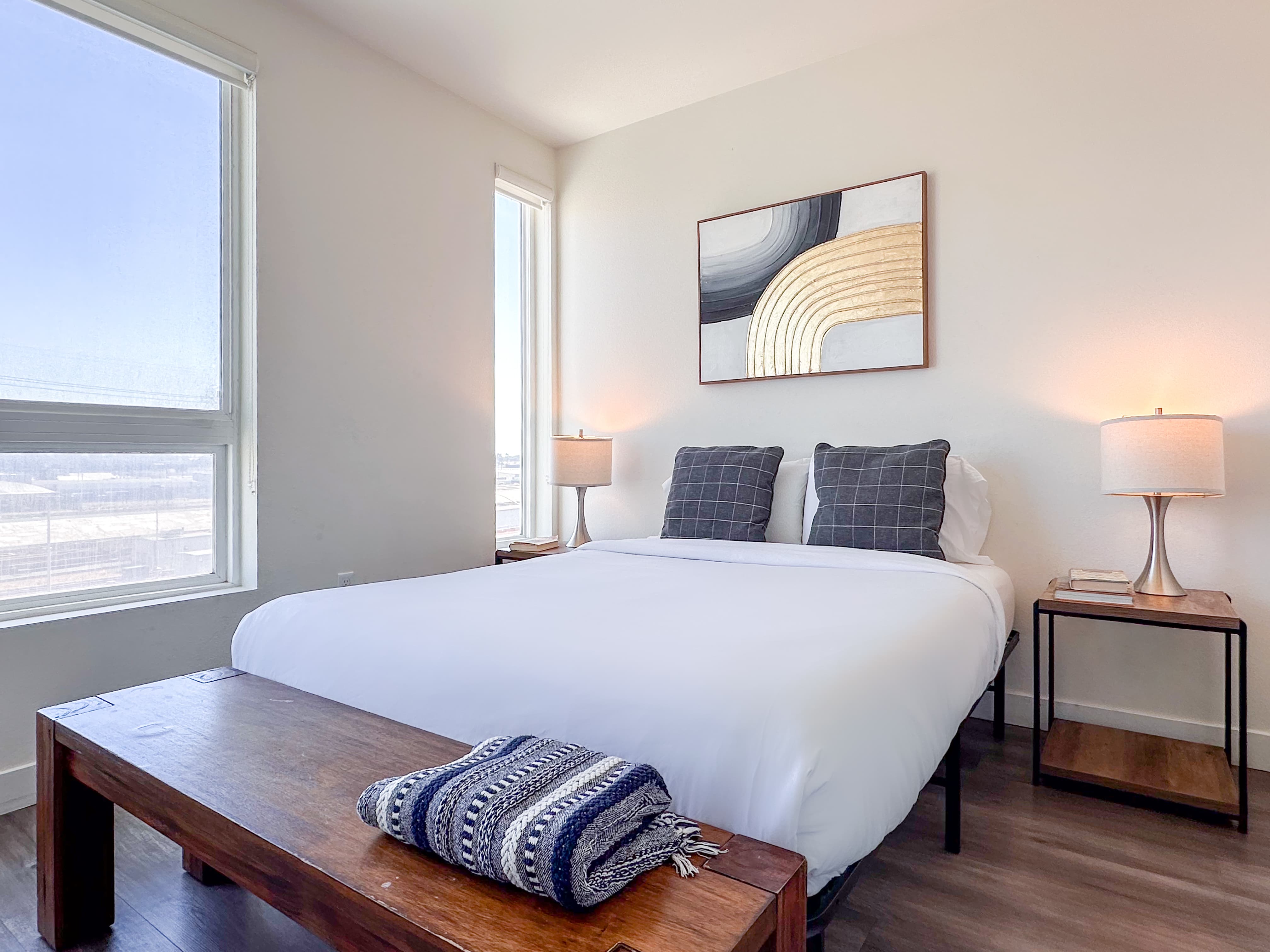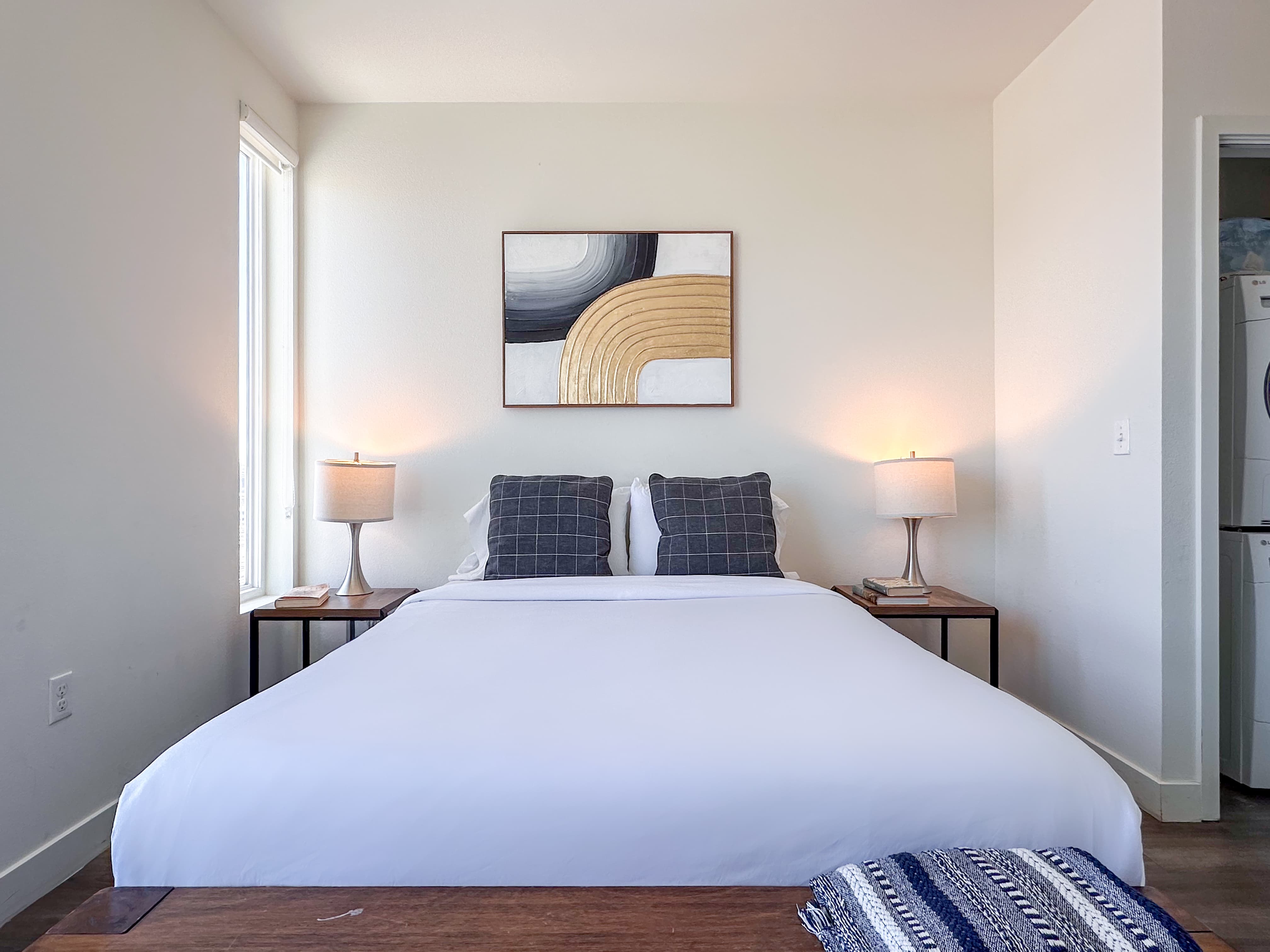 Privacy • Fully private listing with its own entrance. • Noise decibel monitor (no recording). Parking • Street parking nearby (hard to find). • Paid parking lot/garage (~$10/night). • No on-site parking available. • Tesla supercharger 10 min drive. Amenities • 500 sq ft (50 sq m). • Central AC for cool/hot air. • 1 queen bed, bedding, towels. • 100 Mbps WiFi, smart Roku TV. • Washer/dryer inside rental. Not provided • No steamer or iron. • No bathrobe or slippers. • No pool or gym. Kitchen • Full kitchen, cookware, dinnerware, glasses. • Coffee maker (ground coffee), water filter. Noise/view • Usually quiet at night. • Possible noise from street/neighbors. • View of industrial area, no balcony. Self check-In • Receive a link for online check-in and address. Early arrival • Receive early check-in notification on arrival day. • Early check-in can't be guaranteed in advance. • Luggage drop-off usually possible after 1:30 pm. No Smoking • No cigarettes/marijuana inside or on property. • $300 fee for violations to cover odor removal. • Smoking only allowed outside on the street.