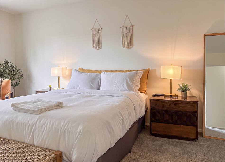 Privacy All areas of the property, including bathrooms, bedrooms, living room, are fully private. Access may be required for gardener or maintenance, but no one will enter the interior without consent. Noise Monitoring Noise decibel monitors are installed to detect high noise levels without recording or transmitting audio, ensuring complete privacy. Expectations The property features dated finishes and appliances, possible noise from neighbors, a scenic window view, ground-level access with a few entry steps, and potential odors from marijuana or cigarettes. Parking No on-site parking is available. Free and paid street parking is available nearby, usually easy to find a spot. Paid public lot is also nearby, costing approximately $25 per night. Sleeping Arrangements The property accommodates up to 4 guests with 2 bedrooms, each featuring a Queen bed, and 1 bathroom. WiFi Standard WiFi with speeds of 100-300 Mbps is provided, along with a smart TV in the living area equipped with streaming apps like Netflix. Air Conditioning Central air conditioning and a Nest thermostat ensure efficient climate control throughout the property. Pool No pool or gym is available on-site. Check-In Guests will receive a Check-In Link upon reservation confirmation. A key is available via lockbox or can be delivered upon request. Local security protocols may require guests to provide contact email/phone for managing potential issues.
