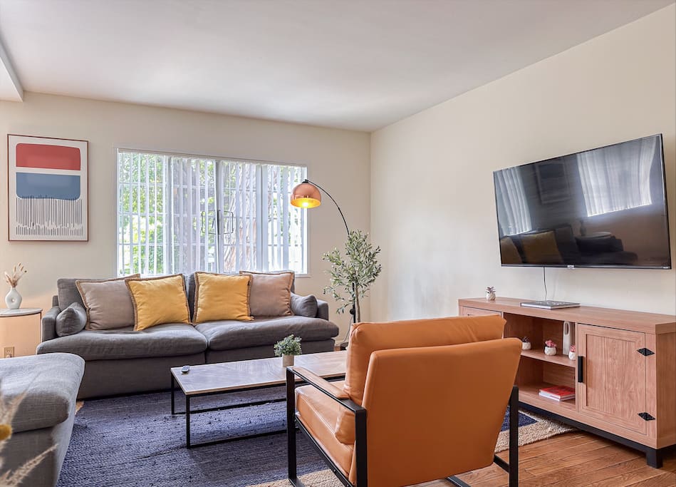 This private townhome shares one wall with an adjacent rental unit and is situated in the heart of Los Angeles, near LACMA museum. The property offers a secure entrance and includes 2 spacious bedrooms and 1 bathroom, making it an ideal accommodation for families, couples, and remote professionals.